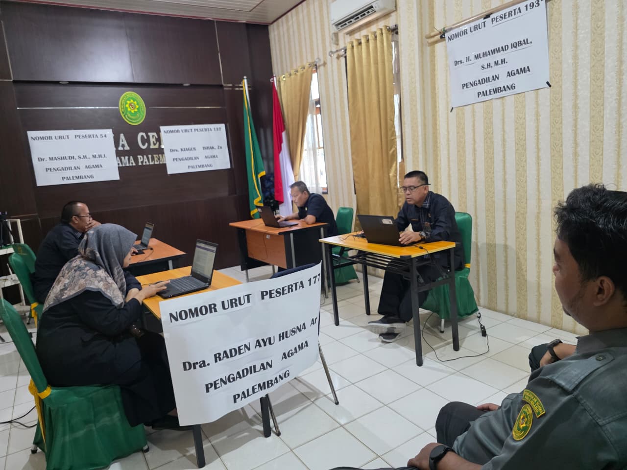 Palembang | Selasa, 23 Desember 2025, Hakim Pengadilan Agama Palembang mengikuti E-Test Fit and Proper Test calon hakim tinggi secara daring. Kegiatan ini menjadi langkah penting dalam mewujudkan sistem promosi jabatan yang transparan, berbasis kompetensi, dan berkeadilan. Dalam pelaksanaan E-Test tersebut, Empat (4) Hakim Pengadilan Agama Palembang turut mengikuti ujian adalah;