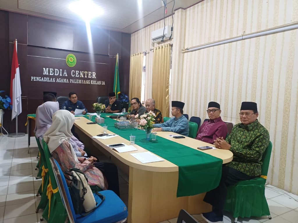 PALEMBANG – Pengadilan Agama (PA) Palembang Kelas IA terus berkomitmen meningkatkan kualitas pelayanan mediasi bagi masyarakat pencari keadilan. Acara tersebut dipimpin langsung oleh Ketua Pengadilan Agama Palembang, Bapak Muhammad Aliyuddin, S.Ag., M.H., dengan didampingi oleh Wakil Ketua, Bapak Doni Dermawan, S.Ag., M.H., serta Panitera PA Palembang secara virtual.