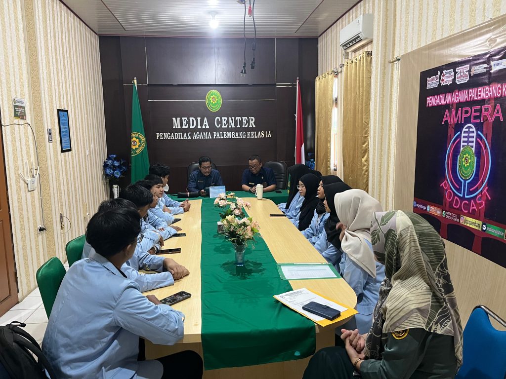 Palembang | Selasa, 13 Januari 2026 – Bertempat di Pengadilan Agama Palembang, telah dilaksanakan serah terima mahasiswa/i Magang Universitas Islam Raden Fatah Palembang yang disambut langsung oleh Ketua Pengadilan Agama Palembang Bapak Muhammad Aliyuddin, S.Ag., M.H. didampingi oleh Sekretaris Bapak H. Annihrir, S.T., M.M. dan Lulu Mandela Hakari, A.Md. Sebanyak 12 Orang Mahasiswa/i, yang akan melaksanakan program akademik berupa Kuliah Kerja Lapangan di PA Palembang. Kegiatan ini merupakan bagian dari pelaksanaan kurikulum pendidikan yang bertujuan memberikan pengalaman nyata di dunia kerja, sekaligus pemahaman praktis atas teori yang telah dipelajari di bangku kuliah. Melalui keterlibatan langsung dengan aparatur peradilan dan sistem kerja profesional.