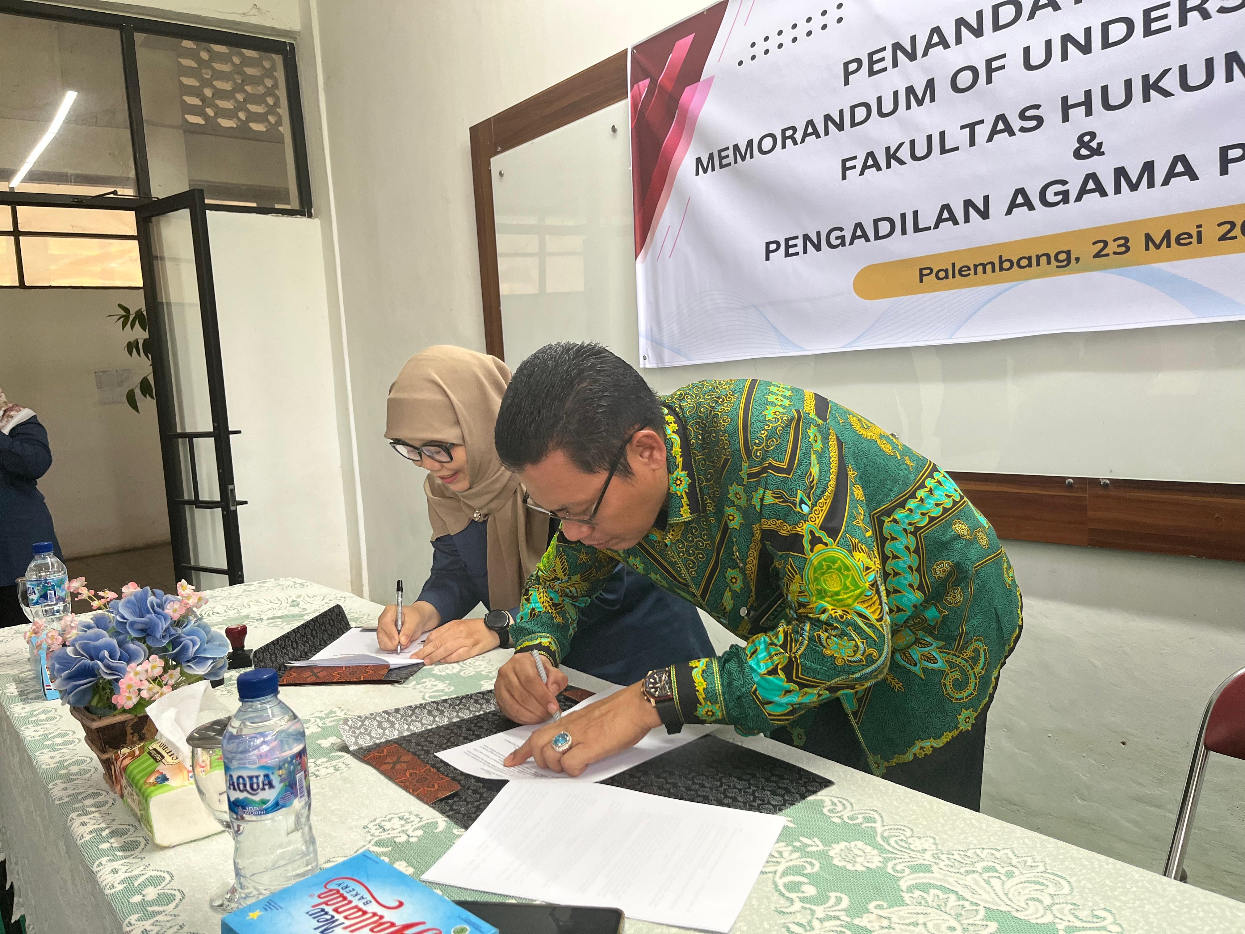 Palembang | Kamis, 23 April 2026 – Ketua Pengadilan Agama Palembang Bapak Muhammad Aliyuddin, S.Ag., M.H. didampingi oleh Panitera, Sekretaris beserta rombongan menghadiri kegiatan penandatanganan Perjanjian Kerjasama (PKS) antara Pengadilan Agama Palembang dan Universitas IBA. Acara tersebut berlangsung di Aula Universitas IBA dengan dihadiri jajaran pimpinan, dosen, serta para mahasiswa. Penandatanganan Pejanjian Kerjasama ditutup dengan sesi foto bersama, menandai komitmen kedua institusi untuk bersinergi dan memberikan kontribusi nyata dalam pengembangan ilmu hukum dan peningkatan pelayanan publik di bidang peradilan agama.